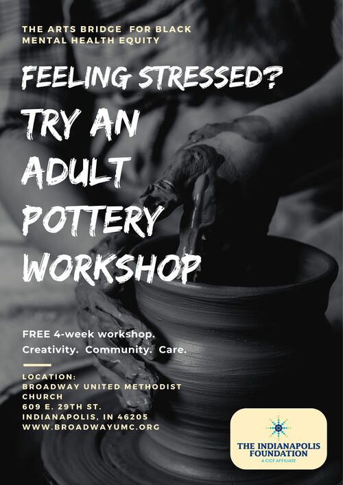 Each 4-week pottery workshop and conversation happens in the Pottery Studio at Broadway (Room 306) . Local Artist, Tania Wineglass, coordinates programming for both adults and youth. CLICK HERE to get connected to our next class. Classes are FREE thanks to the generous support from grants from both IAAQLI and The Indianapolis Foundation.