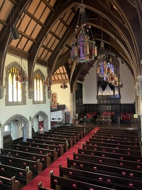 On April 21, 2019, the congregation celebrated Easter Sunday in worship together for the first time back in the restored Sanctuary. In addition to the fire remediation work, building improvements were made throughout including new LED lighting, Wi-Fi expansion, fresh paint, air conditioning in the parlor, and a complete remodel of the Community Room (now known as Backstage at Broadway) including new stage lighting, sound, and video technology.
