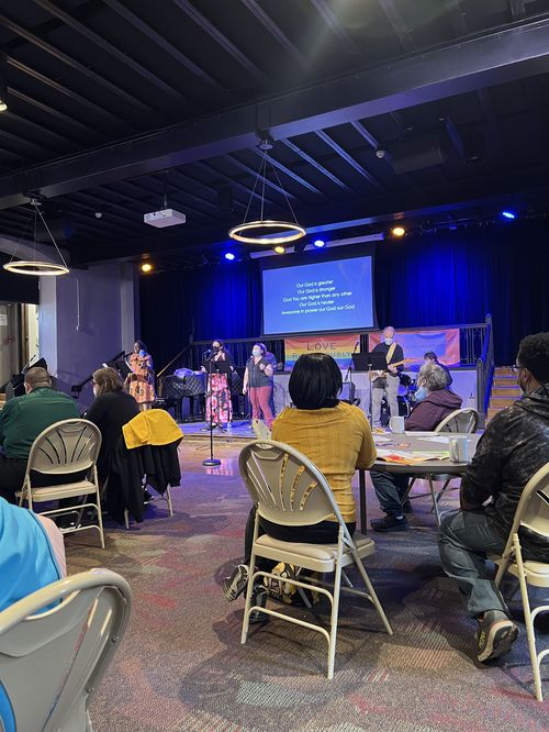 On the 3rd Sunday of each month we gather for worship in Backstage at Broadway (Lower Level - Enter Door #1 or #2) ) for a Celebration Service. This relaxed, interactive, worship service features a live band, tables and chairs, conversation, and Holy Communion. Each service focuses on a theme and includes activities which engage people of all ages.